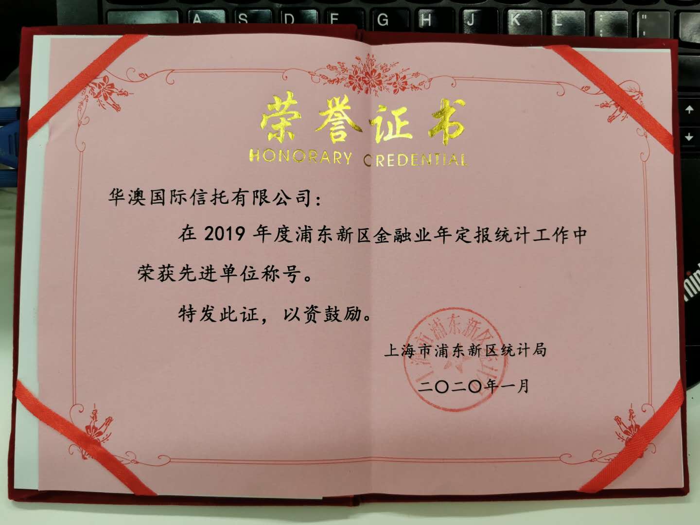 2020年1月,公司又再次荣获由上海市浦东新区统计局颁发的荣誉证书,公司在2019年度浦东新区金融业年定报统计工作中荣获先进单位称号。